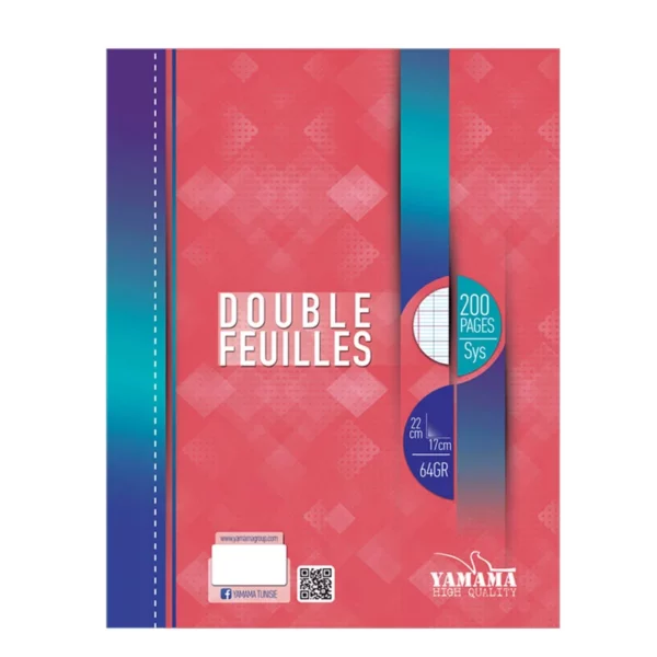 Double Feuilles Simple YAMAMA avec 200 pages au format A5 (17 x 22 cm). Grammage de 60 g/m² et réglure Seyès, idéal pour l’école et la prise de notes.